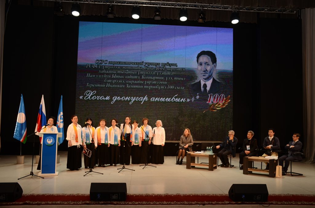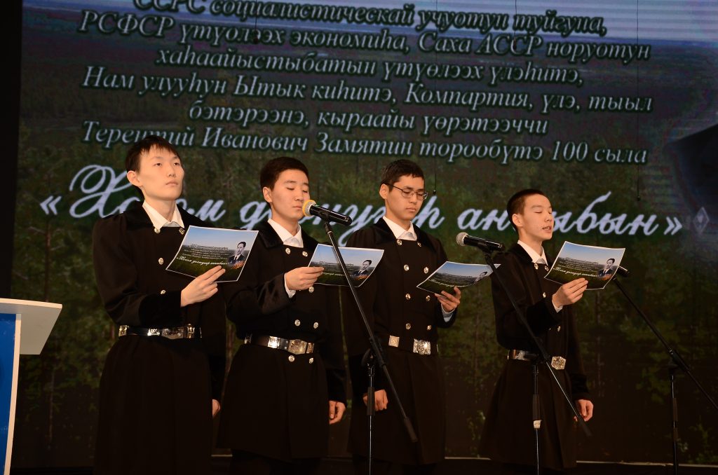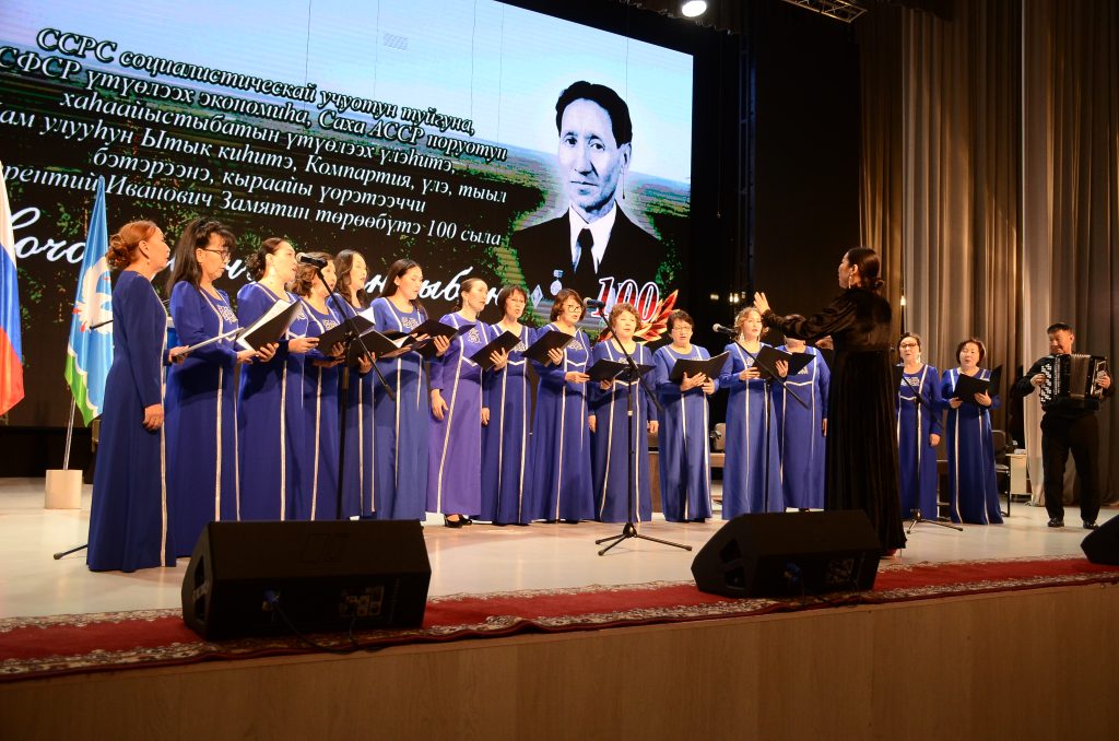 Тэрээһин «Ньургуһун» үҥкүү-хор народнай коллективын (хормейстер Сардана Харитонова, концертмейстер Афанасий Татаринов) толоруутугар Терентий Замятин тылларыгар «Эҥсиэли хочото – Нам сирэ» ырыатынан саҕаланна.